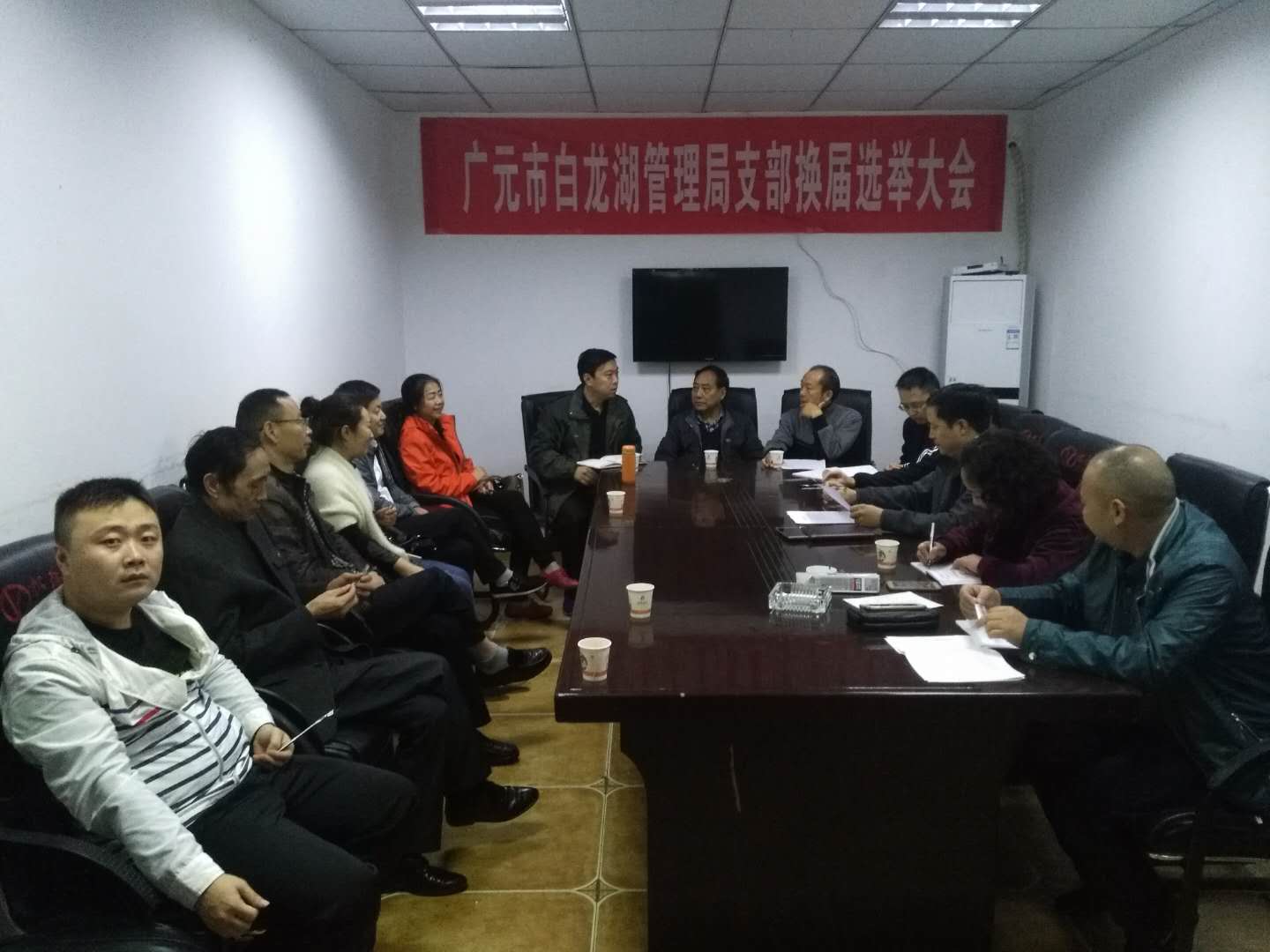 下山后,全体党员同志在湿地公园职工之家召开了支部换届选举大会,选举产生了新一届机关支部和退休支部班子,支部委员代表在会上作了热情洋溢的表态发言,会场充满团结和谐的气氛。局领导向老同志介绍了近年来“两湖”取得的成果及发展规划,鼓舞了党员干部干事创业激情。